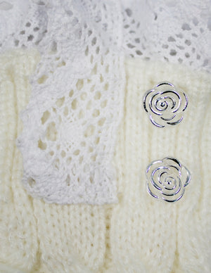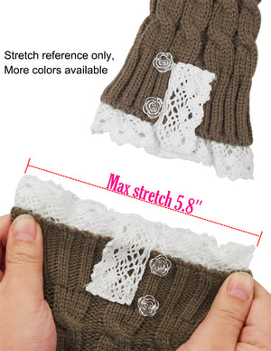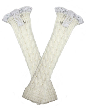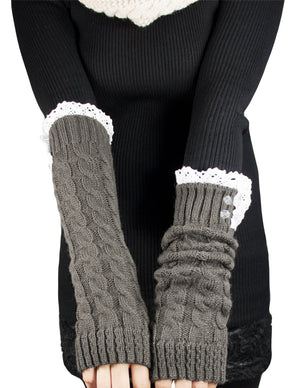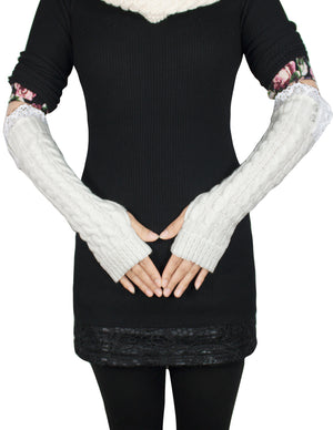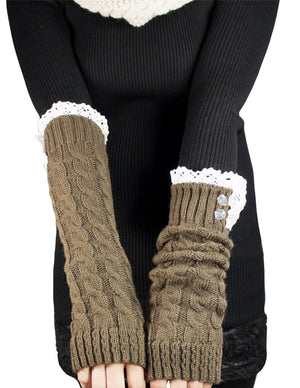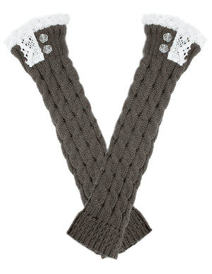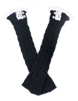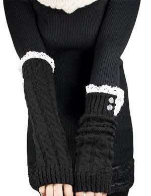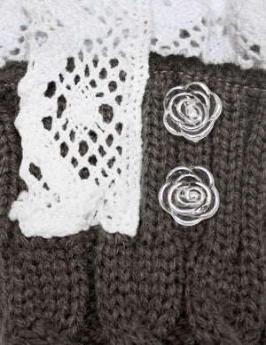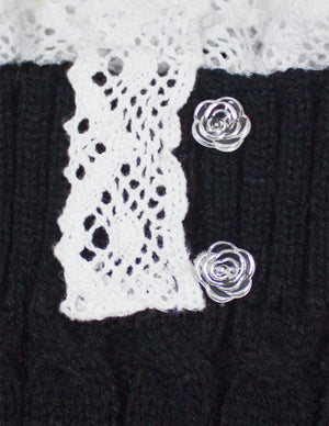 Fingerless Arm Warmer Gloves Lace Rose Button Medium