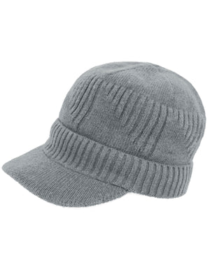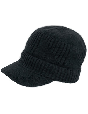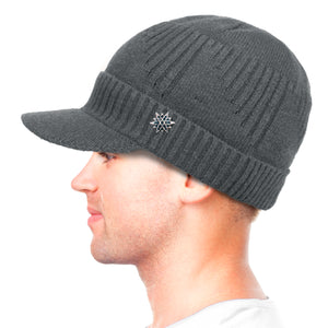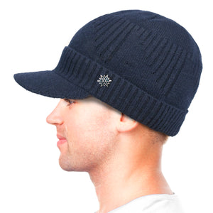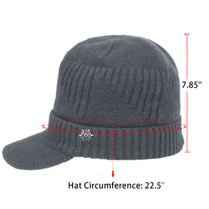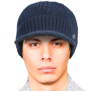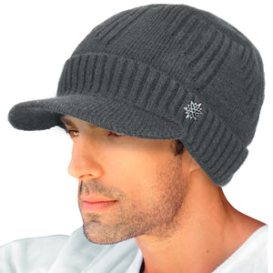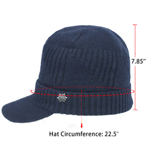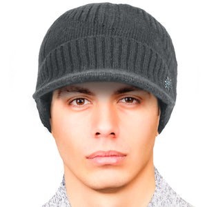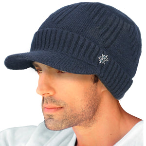 Men's Wool Blend Visor Beanie Cap, Velour Fleece Lined