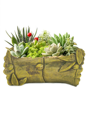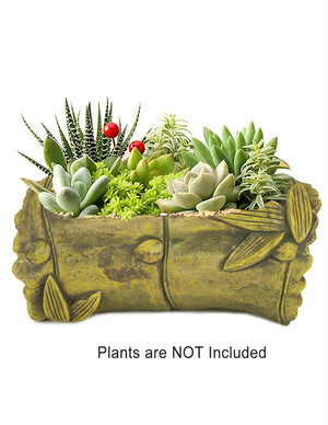 Vintage Bamboo Hand Carved Concrete Succulent Planter | Plant Pot | Dahlia