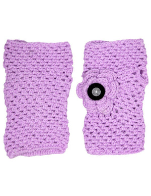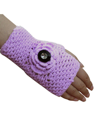 Button Accented Flower Acrylic Hand Crochet Fingerless Gloves