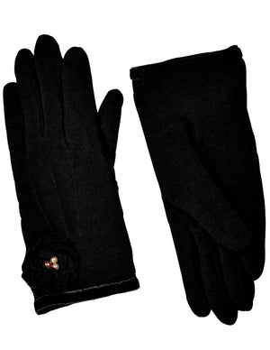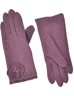 Faux Pearl Accented Flower Wool Blend Dress Gloves