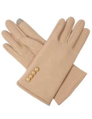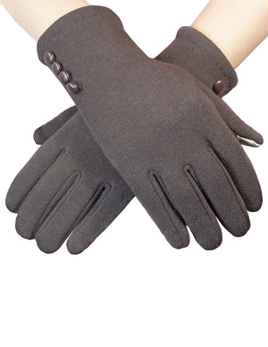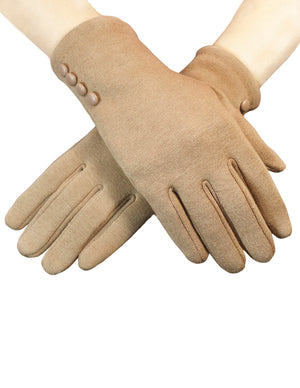 Plaid Buttons Fleece Lining Touchscreen Gloves