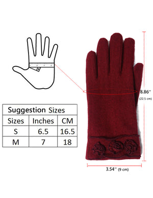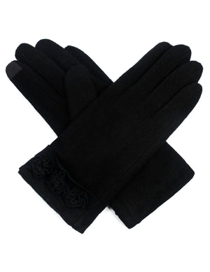 Ruffle Flower Wool Blend Touchscreen Gloves
