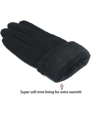 Faux Fur Lace Cuff Lined Touchscreen Gloves
