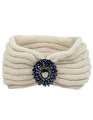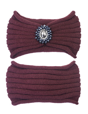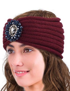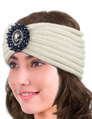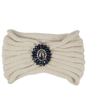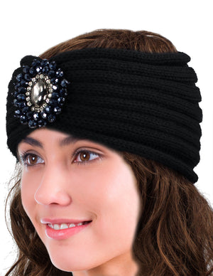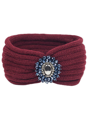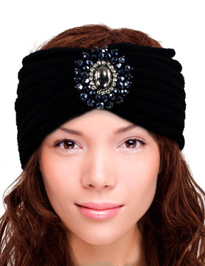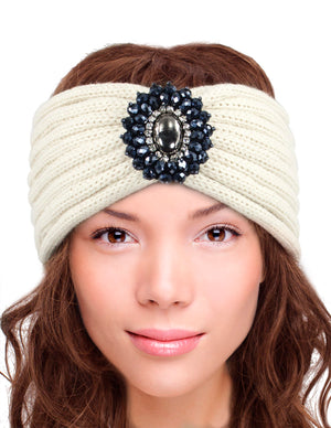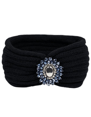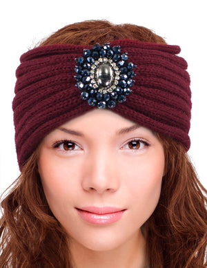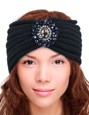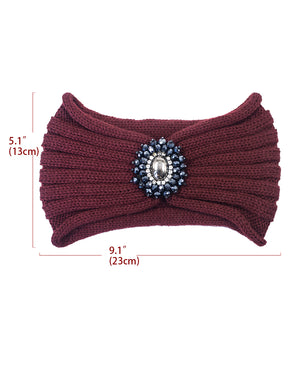 Crystal Medallion Knitted Wide Bohemian Headband
