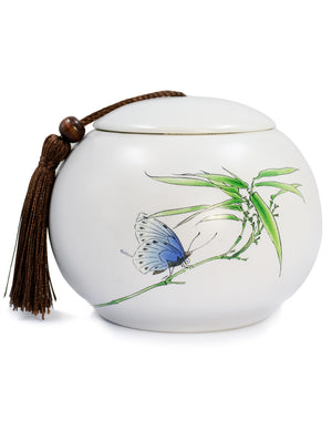 Dahlia Butterfly on Branch Matte Glaze Porcelain Tea Canister