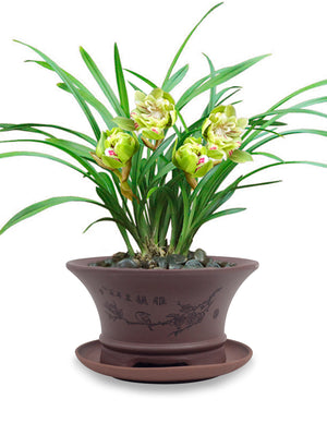 Bird on Branch Zisha Bonsai Pot (with saucer) | Plant Pot | Dahlia