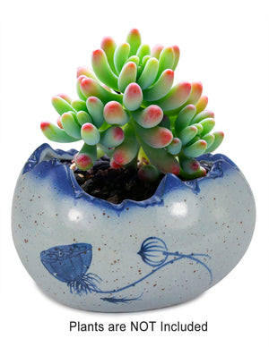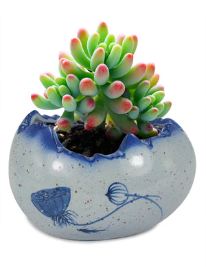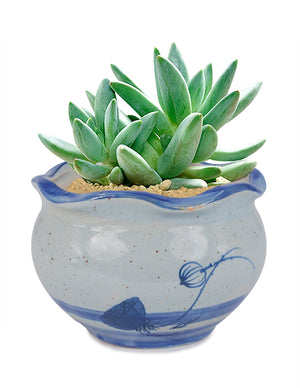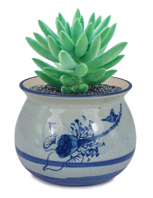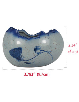 Blue and White Mini Lotus Ceramic Succulent Planter | Plant Pot | Dahlia
