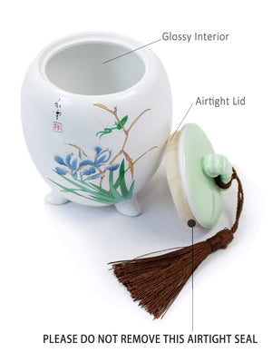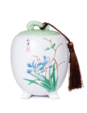 Dahlia Clawfoot Bird Matte Finish Porcelain Tea Canister with Tassel