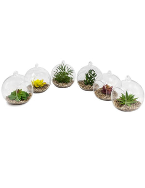 Artificial Mini Succulent Potted Plant in Glass Globe Planter - Set of 6 |Flower Pot | Dahlia