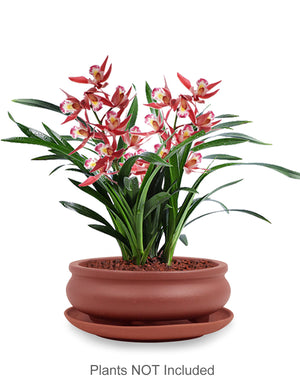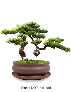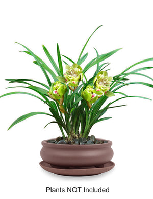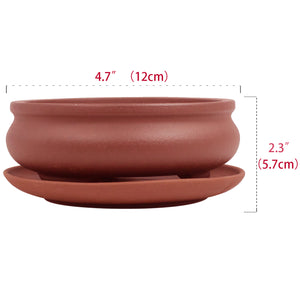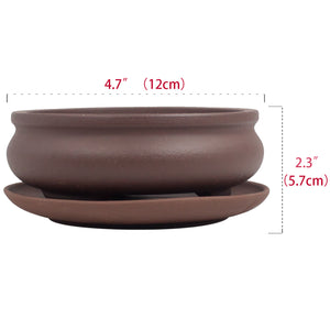 Shallow Bowl Zisha Bonsai Pot (with Saucer) | Bonsai Planter | Dahlia