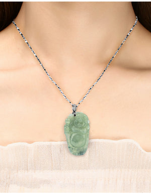 {"id":1746243551277,"title":"Laughing Buddha Jade Necklace | Certified Genuine Grade A Jadeite Jade Pendant Necklace| Dahlia","handle":"jadeite-buddha-pendant-necklace","description":"\u003cul\u003e\n\u003cli\u003eValuable and Safe-to-wear: Jadeite jade is rarer and more expensive than Nephrite, and its value increases overtime. Grade A means the jade is NOT treated by chemicals, thus is safe for your skin, compared to Grade B \u0026amp; C jade.\u003c\/li\u003e\n\u003cli\u003e\n\u003ca href=\"https:\/\/www.dahliany.com\/blogs\/jade-101\/jade-certification\" target=\"_blank\" title=\"certificate of authenticity real genuine grade a jadeite jade jewelry necklace\" rel=\"noopener noreferrer\"\u003e Authenticity\u003c\/a\u003e\u003ca title=\"certificate of authenticity real genuine grade a jadeite jade jewelry necklace\" href=\"https:\/\/www.dahliany.com\/blogs\/jade-101\/jade-certification-authenticity-and-care\" target=\"_blank\" data-mce-href=\"https:\/\/www.dahliany.com\/blogs\/jade-101\/jade-certification-authenticity-and-care\"\u003e:\u003cspan\u003e \u003c\/span\u003e\u003c\/a\u003eEach piece comes with a certificate by China's National Testing Center which is more authoritative in certifying jade than G.I.A. of the U.S.A. The certificate can be verified online instantly. Due to the nature of jade, each piece varies slightly by size, weight, and color from the image.\u003c\/li\u003e\n\u003cli\u003e\n\u003ca title=\"jade symbolism meaning grade a jadeite jewelry dahlia real\" href=\"https:\/\/www.dahliany.com\/blogs\/jade-101\/jade-symbolism\" target=\"_blank\" data-mce-href=\"https:\/\/www.dahliany.com\/blogs\/jade-101\/jade-symbolism\"\u003eMeaning:\u003cspan\u003e \u003c\/span\u003e\u003c\/a\u003eJadeite jade is believed to have healing power and wards off evil spirits. \u003c\/li\u003e\n\u003cli\u003eDimension: Due to the nature of jade, each piece varies slightly by design, size, weight, and color from the image. Please compare to the US quarter coin reference in the product picture. The rope is 16\" inches long with 8\" inches extender.\u003c\/li\u003e\n\u003cli\u003eRISK FREE: Covers all defects and damages with no-question-asked return policy\u003c\/li\u003e\n\u003c\/ul\u003e\n\u003c!-- split --\u003e\n\u003cp\u003e \u003c\/p\u003e","published_at":"2019-04-09T11:39:39-04:00","created_at":"2019-04-09T11:39:50-04:00","vendor":"Dahlia","type":"Necklace","tags":["106730.9905A","Category_Necklaces \u0026 Pendants","Jade","Price_$25 to $50","Price_$50 to $100","Stone_Jade"],"price":3995,"price_min":3995,"price_max":299995,"available":true,"price_varies":true,"compare_at_price":5995,"compare_at_price_min":5995,"compare_at_price_max":449995,"compare_at_price_varies":true,"variants":[{"id":43740697886967,"title":"Q70","option1":"Q70","option2":null,"option3":null,"sku":"106730.9905","requires_shipping":true,"taxable":true,"featured_image":{"id":39159026942199,"product_id":1746243551277,"position":1,"created_at":"2023-02-07T11:28:48-05:00","updated_at":"2023-02-07T11:28:48-05:00","alt":"Jade Necklace | Laughing Buddha Jade Pendant Necklace | Dahlia","width":1004,"height":1300,"src":"\/\/www.dahliany.com\/cdn\/shop\/products\/106730.9905_main_2002_d1550e7d-dadd-4fe1-9783-7a9288867b28.jpg?v=1675787328","variant_ids":[43740697886967]},"available":false,"name":"Laughing Buddha Jade Necklace | Certified Genuine Grade A Jadeite Jade Pendant Necklace| Dahlia - Q70","public_title":"Q70","options":["Q70"],"price":3995,"weight":54,"compare_at_price":5995,"inventory_management":"shopify","barcode":null,"featured_media":{"alt":"Jade Necklace | Laughing Buddha Jade Pendant Necklace | Dahlia","id":31753229598967,"position":1,"preview_image":{"aspect_ratio":0.772,"height":1300,"width":1004,"src":"\/\/www.dahliany.com\/cdn\/shop\/products\/106730.9905_main_2002_d1550e7d-dadd-4fe1-9783-7a9288867b28.jpg?v=1675787328"}},"requires_selling_plan":false,"selling_plan_allocations":[]},{"id":15000445550637,"title":"Q80","option1":"Q80","option2":null,"option3":null,"sku":"106730.9905X","requires_shipping":true,"taxable":true,"featured_image":{"id":39159026974967,"product_id":1746243551277,"position":5,"created_at":"2023-02-07T11:28:48-05:00","updated_at":"2023-02-07T11:54:11-05:00","alt":"Jade Necklace | Laughing Buddha Jade Pendant Necklace | Dahlia","width":740,"height":903,"src":"\/\/www.dahliany.com\/cdn\/shop\/products\/106730.9905X_main_2002_fa13f9a8-3d38-43ba-a54f-033a9d91c4d1.jpg?v=1675788851","variant_ids":[15000445550637]},"available":true,"name":"Laughing Buddha Jade Necklace | Certified Genuine Grade A Jadeite Jade Pendant Necklace| Dahlia - Q80","public_title":"Q80","options":["Q80"],"price":4995,"weight":54,"compare_at_price":7495,"inventory_management":"shopify","barcode":null,"featured_media":{"alt":"Jade Necklace | Laughing Buddha Jade Pendant Necklace | Dahlia","id":31753229631735,"position":5,"preview_image":{"aspect_ratio":0.819,"height":903,"width":740,"src":"\/\/www.dahliany.com\/cdn\/shop\/products\/106730.9905X_main_2002_fa13f9a8-3d38-43ba-a54f-033a9d91c4d1.jpg?v=1675788851"}},"requires_selling_plan":false,"selling_plan_allocations":[]},{"id":43740697919735,"title":"Q90","option1":"Q90","option2":null,"option3":null,"sku":"106763.9905-C","requires_shipping":true,"taxable":true,"featured_image":{"id":39159027007735,"product_id":1746243551277,"position":9,"created_at":"2023-02-07T11:28:48-05:00","updated_at":"2023-02-07T11:54:11-05:00","alt":"Jade Necklace | Laughing Buddha Jade Pendant Necklace | Dahlia","width":1004,"height":1300,"src":"\/\/www.dahliany.com\/cdn\/shop\/products\/106763.9905-C_main_2002_a92d1661-844b-4dc9-ae1d-4ef5c1bb0b0c.jpg?v=1675788851","variant_ids":[43740697919735]},"available":true,"name":"Laughing Buddha Jade Necklace | Certified Genuine Grade A Jadeite Jade Pendant Necklace| Dahlia - Q90","public_title":"Q90","options":["Q90"],"price":6495,"weight":54,"compare_at_price":9745,"inventory_management":"shopify","barcode":null,"featured_media":{"alt":"Jade Necklace | L