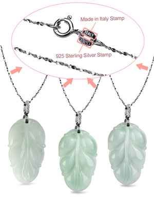 {"id":7890771247351,"title":"Leaf Jade Necklace | Real Grade A Certified Burma Jadeite for Grace and Prosperity","handle":"leaf-jade-necklace","description":"\u003cul\u003e\n\u003cli\u003eHISTORICAL SENTIMENTAL SYMBOL: Jade leaf referred to nobility in ancient China. It symbolizes elegance and grace and represents fertility, growth, and prosperity. Gift to wish elderly longevity, newlywed fertility, and professionals a career success.\u003c\/li\u003e\n\u003cli\u003eVALUABLE \u0026amp; SYMBOLIC PRECIOUS STONE: Burma jadeite jade is the most expensive variety of jade. Its value has increased dramatically the past few decades and is used as a lucky charm that brings fortune, contains healing powers, and wards off evil.\u003c\/li\u003e\n\u003cli\u003eCERTIFIED REAL GRADE A JADE: Dahlia’s jade is certified by China’s National Testing Center, a GIA equivalent, and can be instantly verified online. Grade A means the jade is natural, chemical free, and safe to wear, as opposed to Grade B and C.\u003c\/li\u003e\n\u003cli\u003eEASY TO FOLLOW QUALITY RATINGS: Since jade is a very complicated gemstone to price, Dahlia has developed a grading system incorporating factors such as color, transparency, texture, cut and weight. The higher the Q number, the better the quality.\u003c\/li\u003e\n\u003cli\u003eQUALITY ASSURANCE AND CUSTOMER SATISFACTION: Dahlia has been based in NYC for 20+ years, providing top-notch service with a 99% Amazon customer satisfaction rating. We offer quick deliveries, fast turnaround, and a no-questions-asked return policy.\u003c\/li\u003e\n\u003c\/ul\u003e","published_at":"2023-02-13T17:35:26-05:00","created_at":"2023-02-13T17:35:39-05:00","vendor":"Dahlia","type":"Necklace","tags":["106736.9905","Category_Necklaces \u0026 Pendants","Jade","Price_$100 to $250","Price_$50 to $100","Stone_Jade"],"price":9995,"price_min":9995,"price_max":199995,"available":true,"price_varies":true,"compare_at_price":14995,"compare_at_price_min":14995,"compare_at_price_max":299995,"compare_at_price_varies":true,"variants":[{"id":43749177852151,"title":"Silver Bale Only","option1":"Silver Bale Only","option2":null,"option3":null,"sku":"106736.9905-01","requires_shipping":true,"taxable":true,"featured_image":{"id":39201114849527,"product_id":7890771247351,"position":6,"created_at":"2023-02-13T17:35:39-05:00","updated_at":"2023-02-13T17:38:07-05:00","alt":"Leaf Jade Necklace | Real Grade A Certified Burma Jadeite for Grace and Prosperity ","width":1004,"height":1300,"src":"\/\/www.dahliany.com\/cdn\/shop\/products\/106736.9905-01_main_2002.jpg?v=1676327887","variant_ids":[43749177852151]},"available":true,"name":"Leaf Jade Necklace | Real Grade A Certified Burma Jadeite for Grace and Prosperity - Silver Bale Only","public_title":"Silver Bale Only","options":["Silver Bale Only"],"price":9995,"weight":90,"compare_at_price":14995,"inventory_management":"shopify","barcode":null,"featured_media":{"alt":"Leaf Jade Necklace | Real Grade A Certified Burma Jadeite for Grace and Prosperity ","id":31795916275959,"position":6,"preview_image":{"aspect_ratio":0.772,"height":1300,"width":1004,"src":"\/\/www.dahliany.com\/cdn\/shop\/products\/106736.9905-01_main_2002.jpg?v=1676327887"}},"requires_selling_plan":false,"selling_plan_allocations":[]},{"id":43749177884919,"title":"Sterling Silver Bale \u0026 Necklace M","option1":"Sterling Silver Bale \u0026 Necklace M","option2":null,"option3":null,"sku":"106736.9905-02","requires_shipping":true,"taxable":true,"featured_image":{"id":39201114882295,"product_id":7890771247351,"position":7,"created_at":"2023-02-13T17:35:39-05:00","updated_at":"2023-02-13T17:38:07-05:00","alt":"Leaf Jade Necklace | Real Grade A Certified Burma Jadeite for Grace and Prosperity ","width":1004,"height":1300,"src":"\/\/www.dahliany.com\/cdn\/shop\/products\/106736.9905-02_main_2002.jpg?v=1676327887","variant_ids":[43749177884919]},"available":true,"name":"Leaf Jade Necklace | Real Grade A Certified Burma Jadeite for Grace and Prosperity - Sterling Silver Bale \u0026 Necklace M","public_title":"Sterling Silver Bale \u0026 Necklace M","options":["Sterling Silver Bale \u0026 Necklace M"],"price":13995,"weight":90,"compare_at_price":20995,"inventory_management":"shopify","barcode":null,"featured_media":{"alt":"Leaf Jade Necklace | Real Grade A Certified Burma Jadeite for Grace and Prosperity ","id":31795916308727,"position":7,"preview_image":{"aspect_ratio":0.772,"height":1300,"width":1004,"src":"\/\/www.dahliany.com\/cdn\/shop\/products\/106736.9905-02_main_2002.jpg?v=1676327887"}},"requires_selling_plan":false,"selling_plan_allocations":[]},{"id":43749177917687,"title":"Sterling Silver Bale \u0026 Necklace L","option1":"Sterling Silver Bale \u0026 Necklace L","option2":null,"option3":null,"sku":"106736.9905-03","requires_shipping":true,"taxable":true,"featured_image":{"id":39201114915063,"product_id":7890771247351,"position":8,"created_at":"2023-02-13T17:35:39-05:00","updated_at":"2023-02-13T17:38:07-05:00","alt":"Leaf Jade Necklace | Real Grade A Certified Burma Jadeite for Grace and Prosperity ","width":1004,"height":1300,"src":"\/\/www.dahliany.com\/cdn\/shop\/products\/106736.9905-03_main_2002.jpg?v=1676327887","variant_ids":[43749177917687]},"available":true,"name":"Leaf Jade Necklace | Real Grade A Certified Burma Jadeite for Grace and Prosperity - Sterling Silver Bale \u0026 Necklace L","public_title":"Sterling Silver Bale \u0026 Necklace L","options":["Sterling Silver Bale \u0026 Necklace L"],"price":15995,"weight":90,"compare_at_price":23995,"inventory_management":"shopify","barcode":null,"featured_media":{"alt":"Leaf Jade Necklace | Real Grade A Certified Burma Jadeite for Grace and Prosperity ","id":31795916341495,"position":8,"preview_image":{"aspect_ratio":0.772,"height":1300,"width":1004,"src":"\/\/www.dahliany.com\/cdn\/shop\/products\/106736.9905-03_main_2002.jpg?v=1676327887"}},"requires_selling_plan":false,"selling_plan_allocations":[]},{"id":43749177950455,"title":"One of a