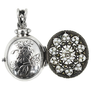 {"id":1802044669997,"title":"Etched Locket Seed Pearl Sterling Silver Pendant w. Lavender Cultured Pearl Chain 16\" - Dahlia Vintage Collection","handle":"etched-locket-seed-pearl-sterling-silver-pendant-necklace","description":"\u003cul\u003e\n\u003cli\u003eSTYLE: This gorgeous locket necklace is meticulously set with tiny seed pearl and marcasite\u003c\/li\u003e\n\u003cli\u003eDIMENSION: Locket pendant is 4cm high by 2.5cm wide (1.57 x 0.98 inches) and pearl chain is 16\" with 2\" extender\u003c\/li\u003e\n\u003cli\u003eThis vintage necklace is classic and timeless for all ages and can even be pass down as an heirloom\u003c\/li\u003e\n\u003cli\u003eUSAGE: Unique and elegant piece of jewelry that stands out on special occasions such as wedding, anniversary, formal event and special dinners and will have your friend asking where you got it\u003c\/li\u003e\n\u003cli\u003eRISK FREE: Covers all defects and damages with no-question-asked return policy\u003c\/li\u003e\n\u003c\/ul\u003e\u003c!-- split --\u003e\u003cp\u003e\u003c\/p\u003e","published_at":"2019-05-02T13:07:37-04:00","created_at":"2019-05-02T13:07:39-04:00","vendor":"Dahlia","type":"Necklace","tags":["203005.1491DL-16","Category_Necklaces \u0026 Pendants","Metal_Sterling Silver","Price_$250 Above","Stone_Seed Pearls","Vintage"],"price":25045,"price_min":25045,"price_max":25045,"available":false,"price_varies":false,"compare_at_price":37495,"compare_at_price_min":37495,"compare_at_price_max":37495,"compare_at_price_varies":false,"variants":[{"id":15216905879597,"title":"Default Title","option1":"Default Title","option2":null,"option3":null,"sku":"203005.1491DL-16","requires_shipping":true,"taxable":true,"featured_image":{"id":11767066558509,"product_id":1802044669997,"position":1,"created_at":"2019-06-17T16:06:41-04:00","updated_at":"2021-01-14T17:30:57-05:00","alt":"[product type] | Etched Locket Seed Pearl Sterling Silver Pendant w. Lavender Cultured Pearl Chain 16\" - Dahlia Vintage Collection | Dahlia","width":1500,"height":1500,"src":"\/\/www.dahliany.com\/cdn\/shop\/products\/203005.1491DL_main.jpg?v=1610663457","variant_ids":[15216905879597]},"available":false,"name":"Etched Locket Seed Pearl Sterling Silver Pendant w. Lavender Cultured Pearl Chain 16\" - Dahlia Vintage Collection","public_title":null,"options":["Default Title"],"price":25045,"weight":92,"compare_at_price":37495,"inventory_management":"shopify","barcode":null,"featured_media":{"alt":"[product type] | Etched Locket Seed Pearl Sterling Silver Pendant w. Lavender Cultured Pearl Chain 16\" - Dahlia Vintage Collection | Dahlia","id":3095138500653,"position":1,"preview_image":{"aspect_ratio":1.0,"height":1500,"width":1500,"src":"\/\/www.dahliany.com\/cdn\/shop\/products\/203005.1491DL_main.jpg?v=1610663457"}},"requires_selling_plan":false,"selling_plan_allocations":[]}],"images":["\/\/www.dahliany.com\/cdn\/shop\/products\/203005.1491DL_main.jpg?v=1610663457","\/\/www.dahliany.com\/cdn\/shop\/products\/203005.1491DL_A.jpg?v=1610663457","\/\/www.dahliany.com\/cdn\/shop\/products\/203005.1491DL_B.jpg?v=1610663457"],"featured_image":"\/\/www.dahliany.com\/cdn\/shop\/products\/203005.1491DL_main.jpg?v=1610663457","options":["Title"],"media":[{"alt":"[product type] | Etched Locket Seed Pearl Sterling Silver Pendant w. Lavender Cultured Pearl Chain 16\" - Dahlia Vintage Collection | Dahlia","id":3095138500653,"position":1,"preview_image":{"aspect_ratio":1.0,"height":1500,"width":1500,"src":"\/\/www.dahliany.com\/cdn\/shop\/products\/203005.1491DL_main.jpg?v=1610663457"},"aspect_ratio":1.0,"height":1500,"media_type":"image","src":"\/\/www.dahliany.com\/cdn\/shop\/products\/203005.1491DL_main.jpg?v=1610663457","width":1500},{"alt":"[product type] | Etched Locket Seed Pearl Sterling Silver Pendant w. Lavender Cultured Pearl Chain 16\" - Dahlia Vintage Collection | Dahlia","id":3095138533421,"position":2,"preview_image":{"aspect_ratio":1.0,"height":1500,"width":1500,"src":"\/\/www.dahliany.com\/cdn\/shop\/products\/203005.1491DL_A.jpg?v=1610663457"},"aspect_ratio":1.0,"height":1500,"media_type":"image","src":"\/\/www.dahliany.com\/cdn\/shop\/products\/203005.1491DL_A.jpg?v=1610663457","width":1500},{"alt":"[product type] | Etched Locket Seed Pearl Sterling Silver Pendant w. Lavender Cultured Pearl Chain 16\" - Dahlia Vintage Collection | Dahlia","id":3095138566189,"position":3,"preview_image":{"aspect_ratio":1.0,"height":1500,"width":1500,"src":"\/\/www.dahliany.com\/cdn\/shop\/products\/203005.1491DL_B.jpg?v=1610663457"},"aspect_ratio":1.0,"height":1500,"media_type":"image","src":"\/\/www.dahliany.com\/cdn\/shop\/products\/203005.1491DL_B.jpg?v=1610663457","width":1500}],"requires_selling_plan":false,"selling_plan_groups":[],"content":"\u003cul\u003e\n\u003cli\u003eSTYLE: This gorgeous locket necklace is meticulously set with tiny seed pearl and marcasite\u003c\/li\u003e\n\u003cli\u003eDIMENSION: Locket pendant is 4cm high by 2.5cm wide (1.57 x 0.98 inches) and pearl chain is 16\" with 2\" extender\u003c\/li\u003e\n\u003cli\u003eThis vintage necklace is classic and timeless for all ages and can even be pass down as an heirloom\u003c\/li\u003e\n\u003cli\u003eUSAGE: Unique and elegant piece of jewelry that stands out on special occasions such as wedding, anniversary, formal event and special dinners and will have your friend asking where you got it\u003c\/li\u003e\n\u003cli\u003eRISK FREE: Covers all defects and damages with no-question-asked return policy\u003c\/li\u003e\n\u003c\/ul\u003e\u003c!-- split --\u003e\u003cp\u003e\u003c\/p\u003e"}