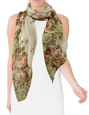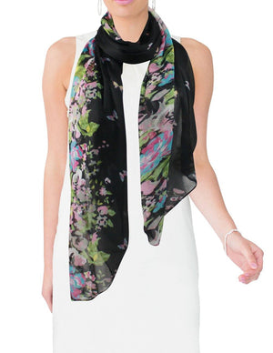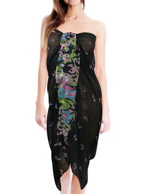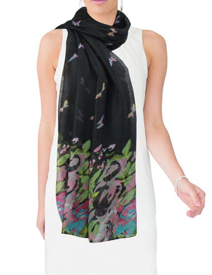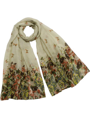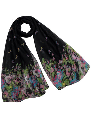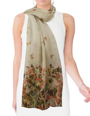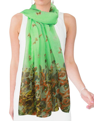 Butterfly Flower Garden Sheer Long Scarf Shawl