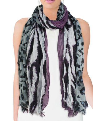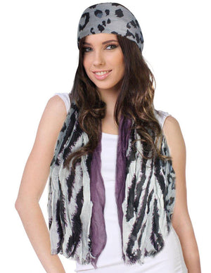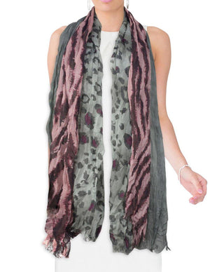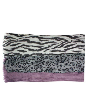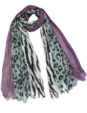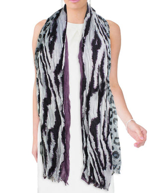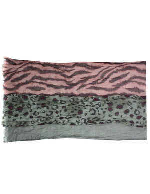 City Jungle Zebra Leopard Print Triple Layer Long Scarf Shawl