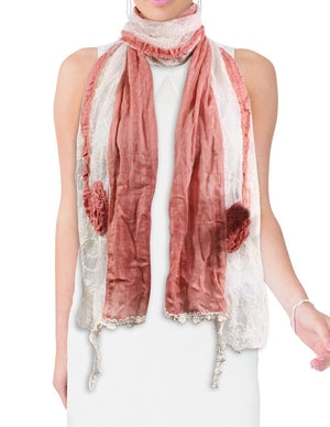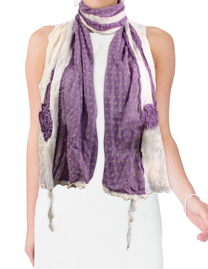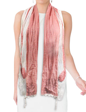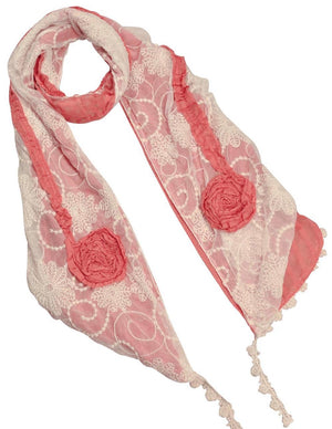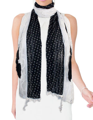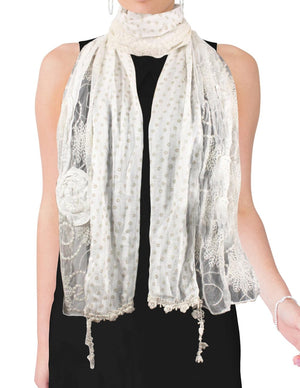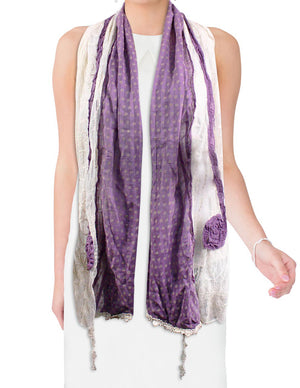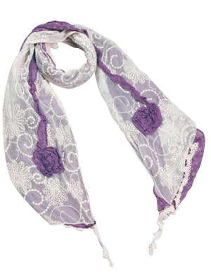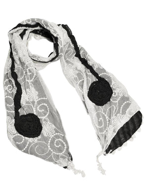 Cotton Lace Stitching Embroider Decorative Flowers Long Scarf Shawl
