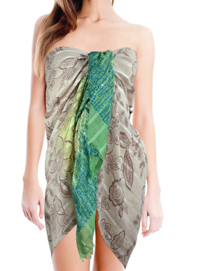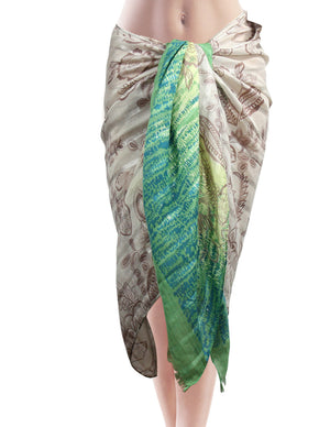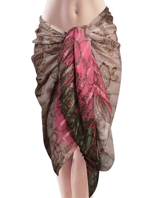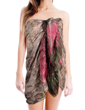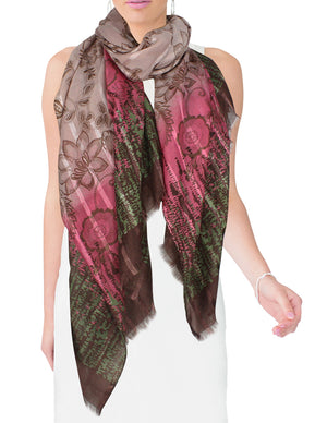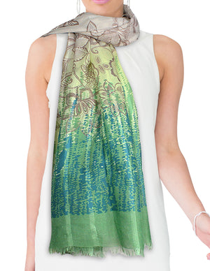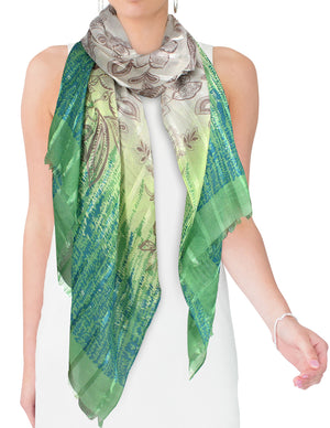 Floral Vine Striped with Three-Tone Long Scarf Shawl Sarong