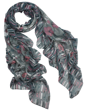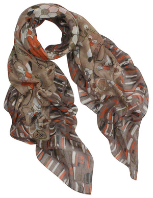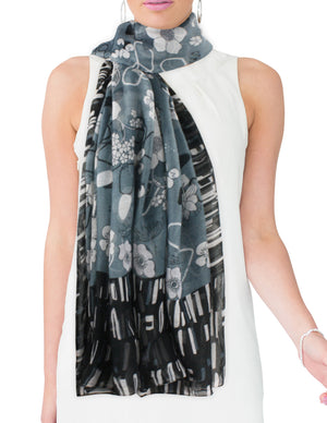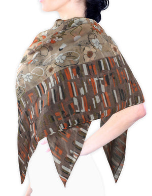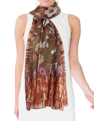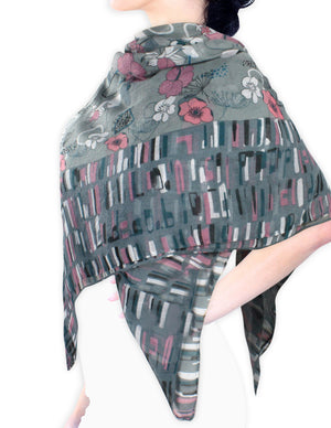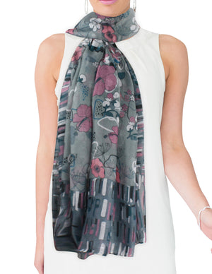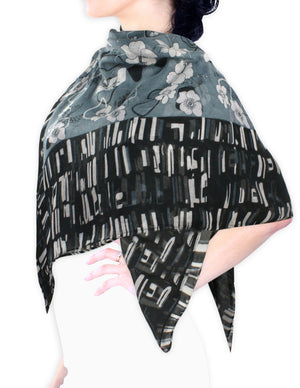 Rayon Scarf Shawl Reversible Large Peony Flowers
