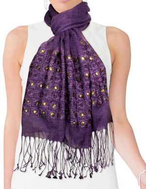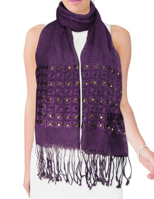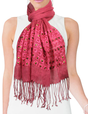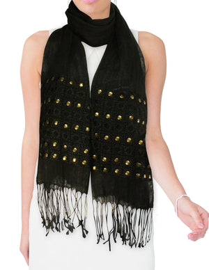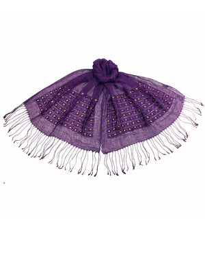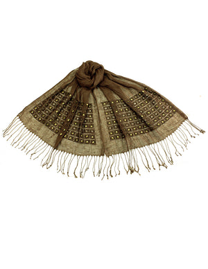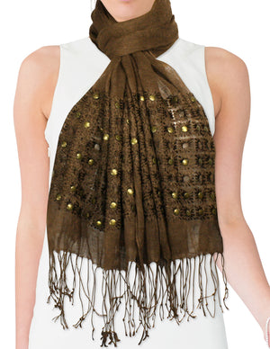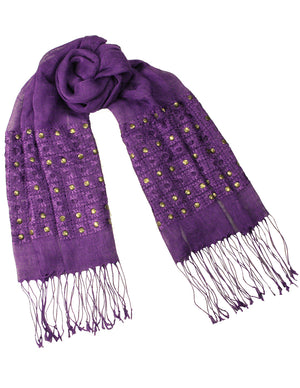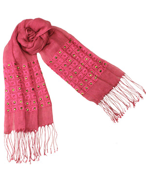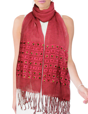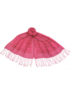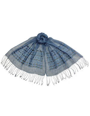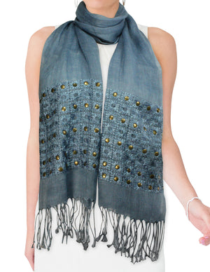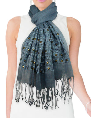 Linen Fashion Hand Embroidered Flowers and Rivets Long Scarf Shawl
