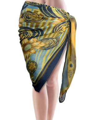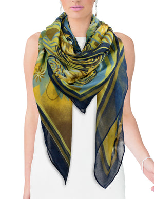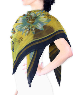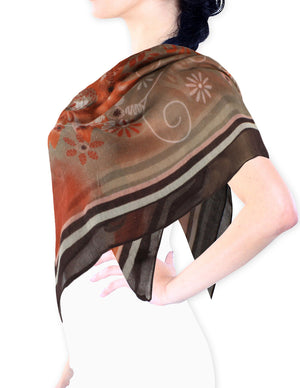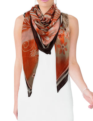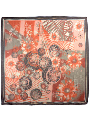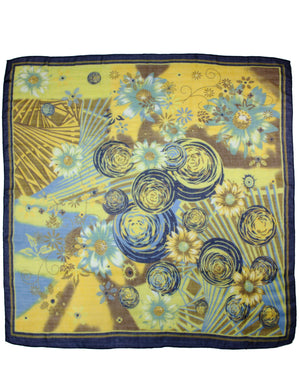 Multi Flowers Diagonal Stripes Circles Print Square Scarf Shawl