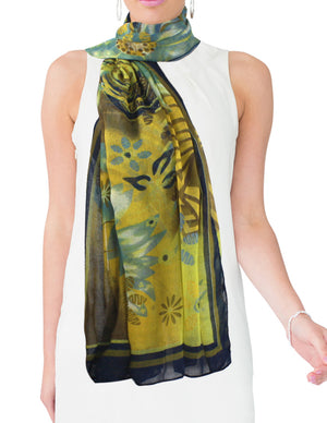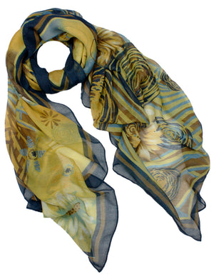 Rayon Scarf Shawl Reversible Large Peony Flowers