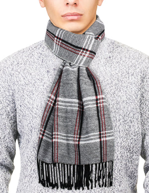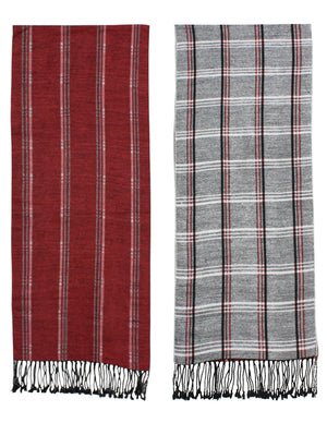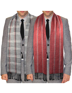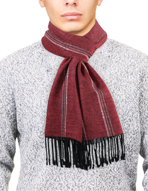 Reversible Gentleman Stripe Plaid Silky Cashmere Feel Long Scarf