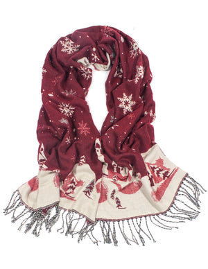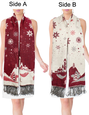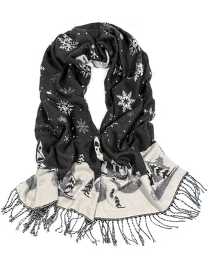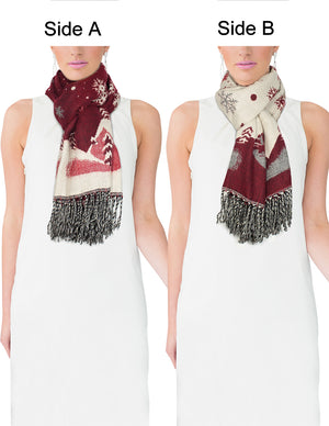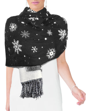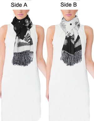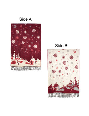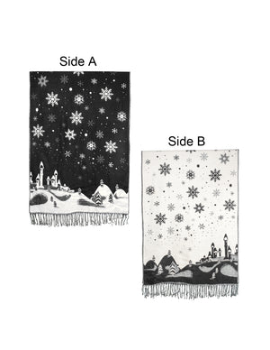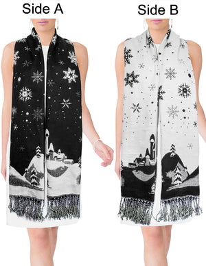 Reversible Long Scarf Shawl Snowflake Winter Wonderland