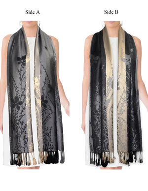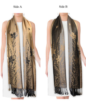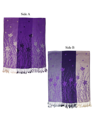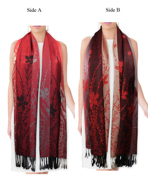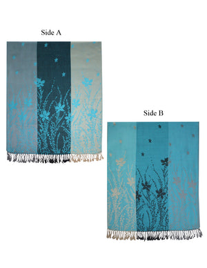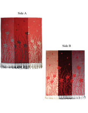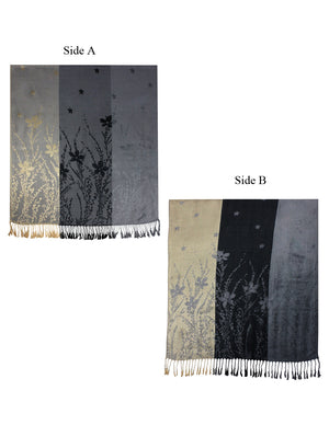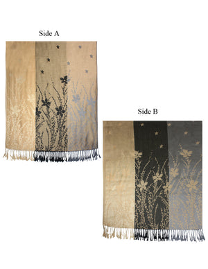 Reversible Wild Flower Triple Panel Color Long Scarf Shawl