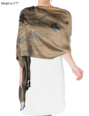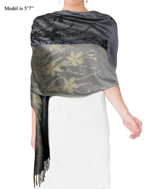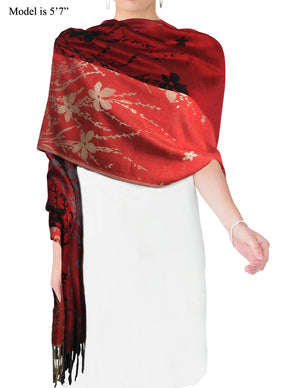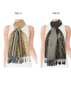 Rayon Scarf Shawl Reversible Large Peony Flowers