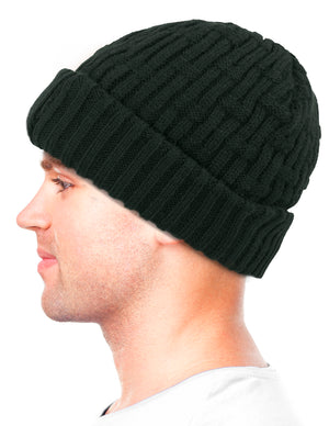 Men's Knit Beanie, Soft & Warm Hat, Interwoven Dual Layer
