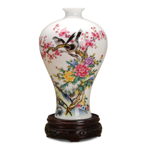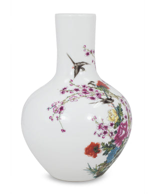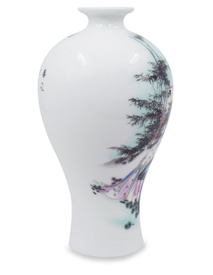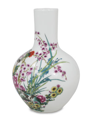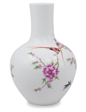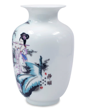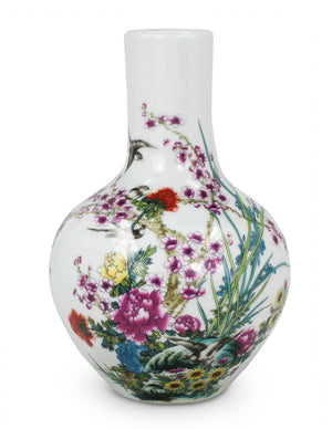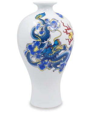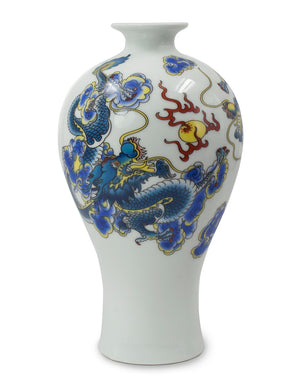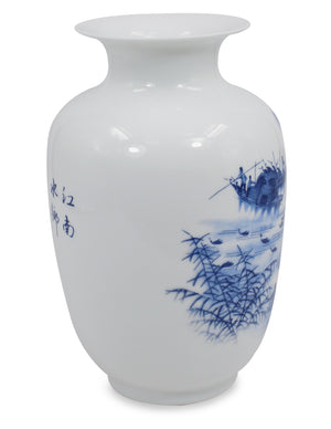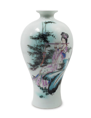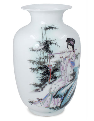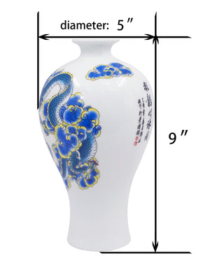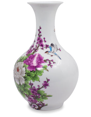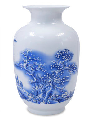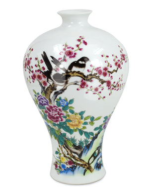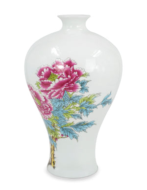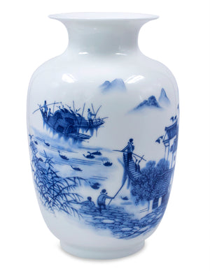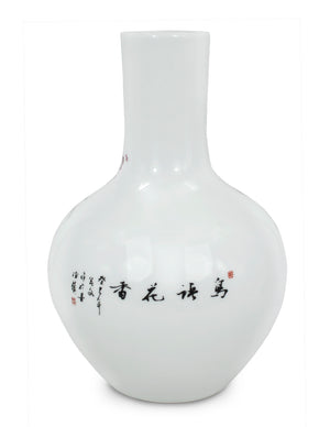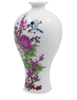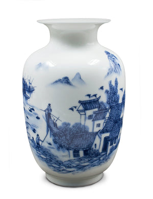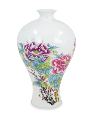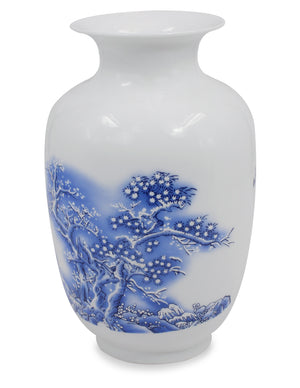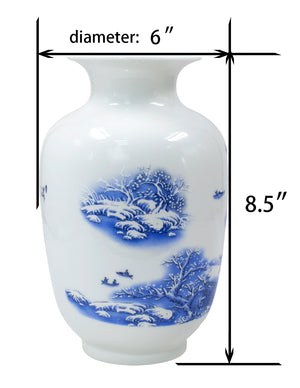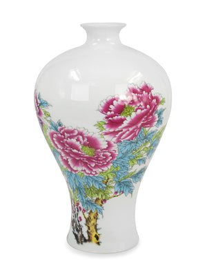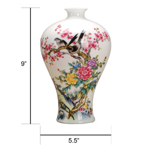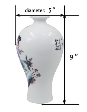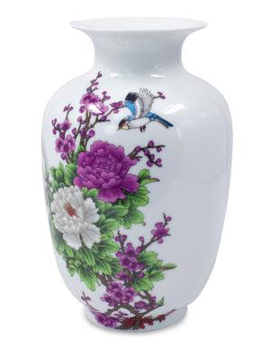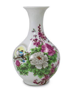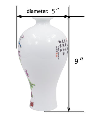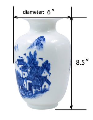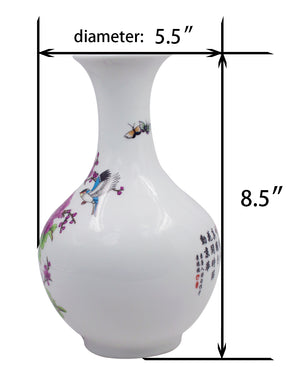 Oriental Blue and White, Famille Rose Porcelain Flower Vase, 9 inch Vase