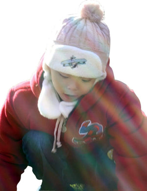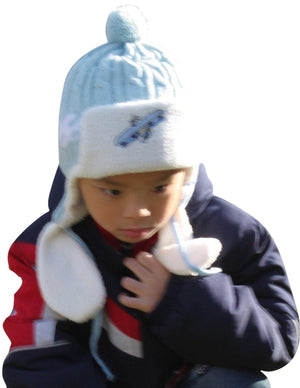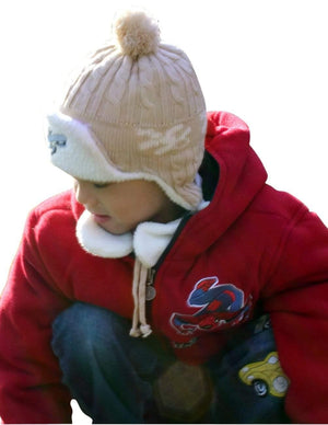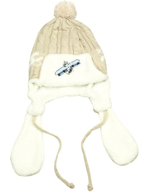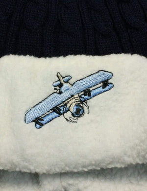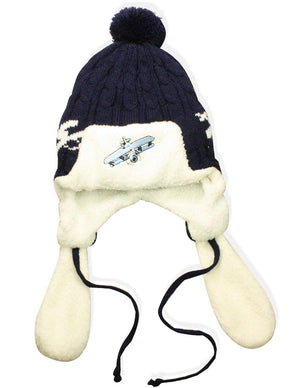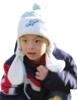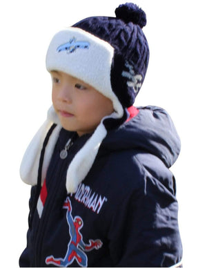 Boy's Embroidered Pilot Cap Hat with Ear Flaps and Pompon