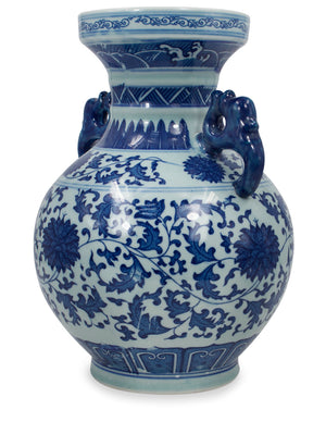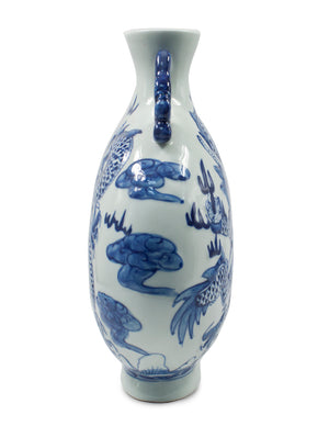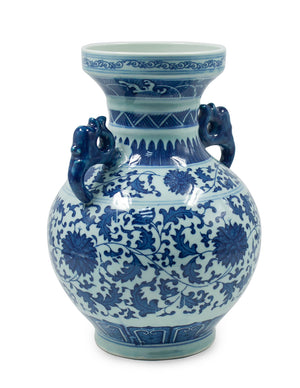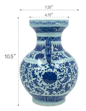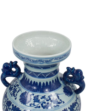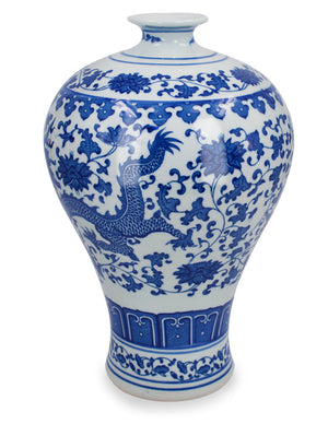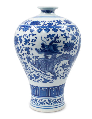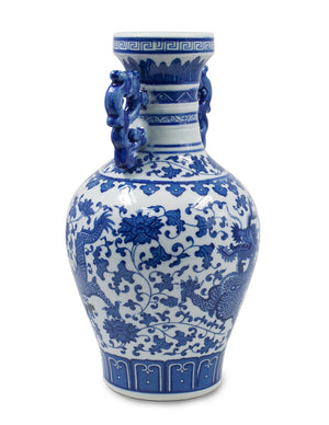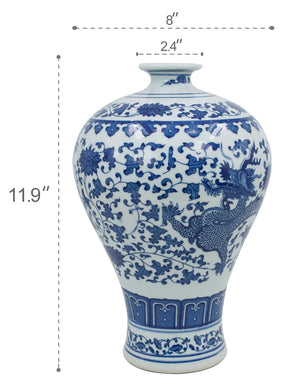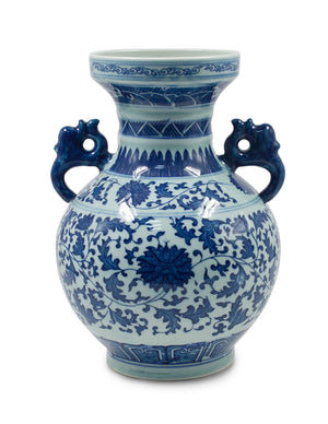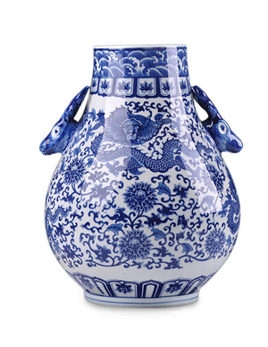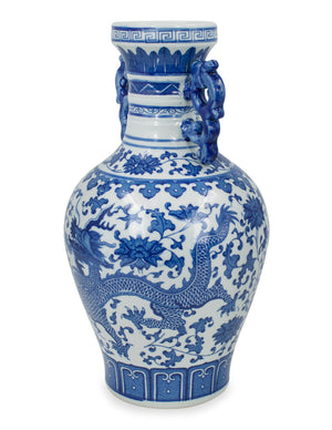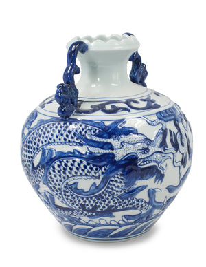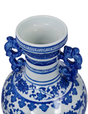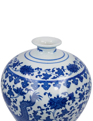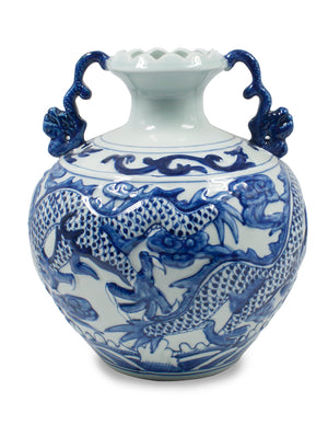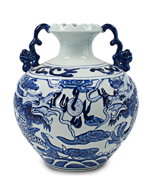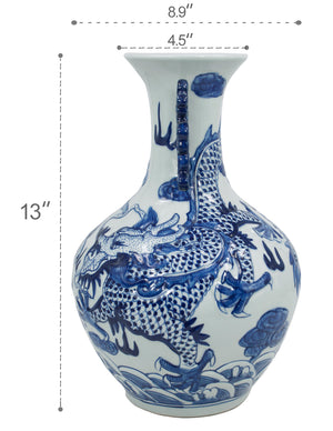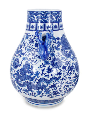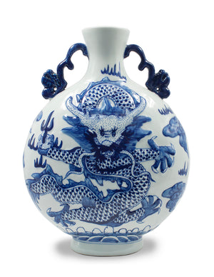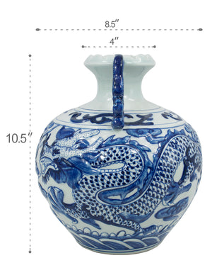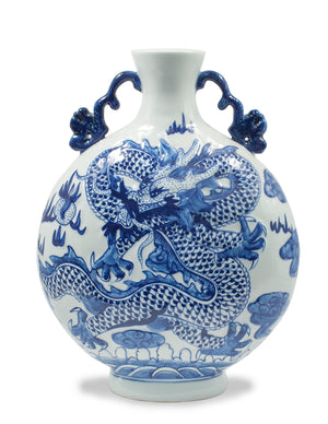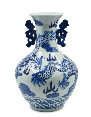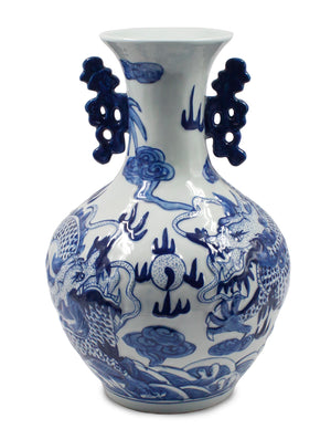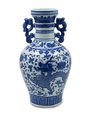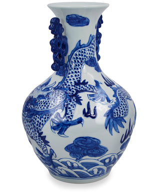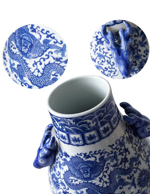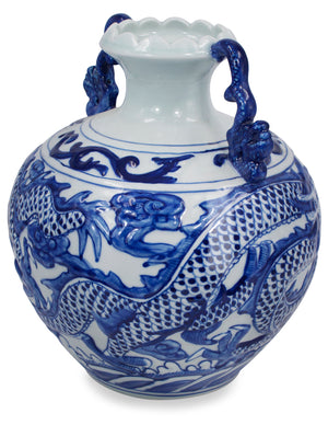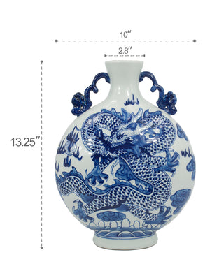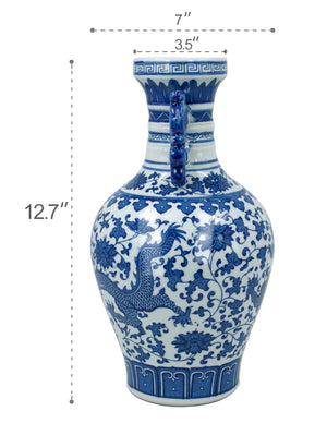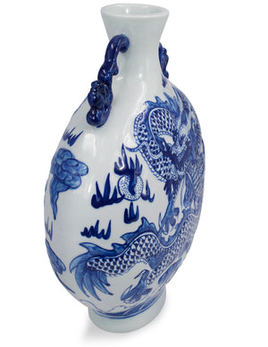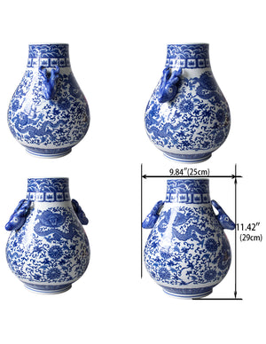 Dahlia Chinese Dragon Blue and White Porcelain Flower Vase Binaural Vase