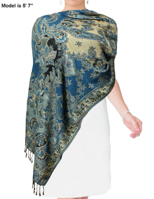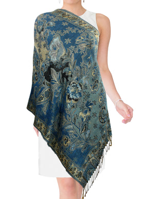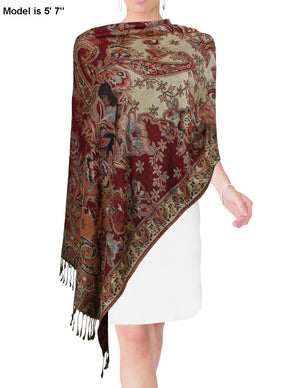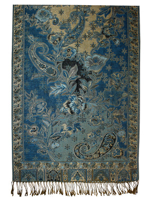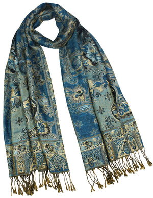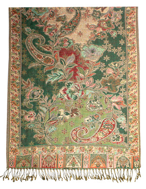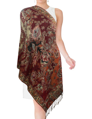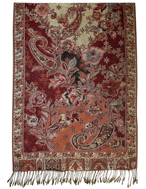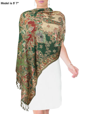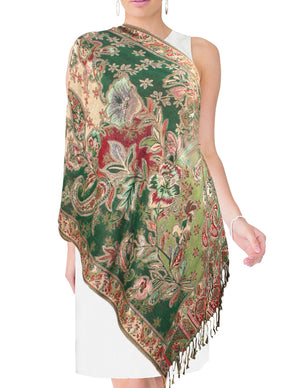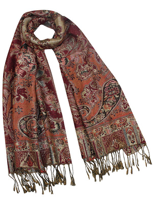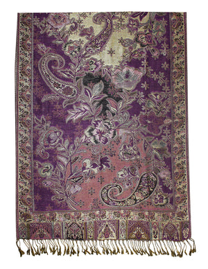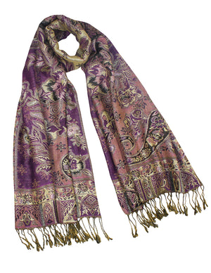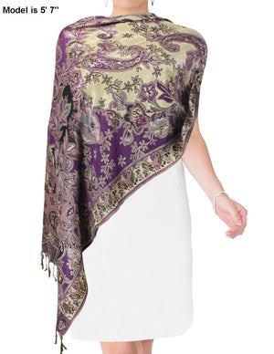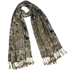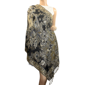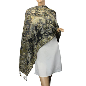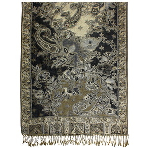 Metallic Paisley Flower Double-Sided Reversible Rayon Long Scarf Shawl