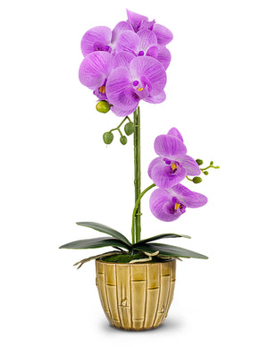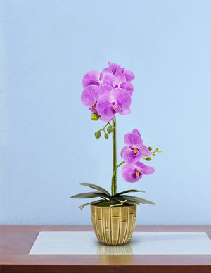 Realistic Orchid Artificial Flower Arrangement with Bamboo Ceramic Pot