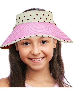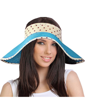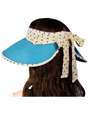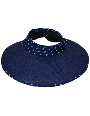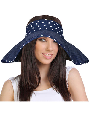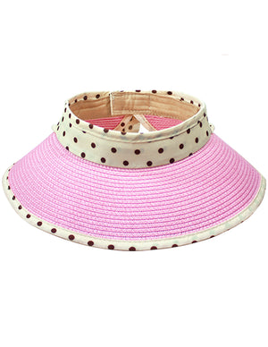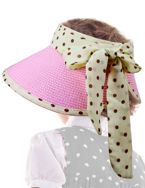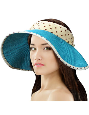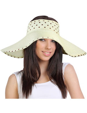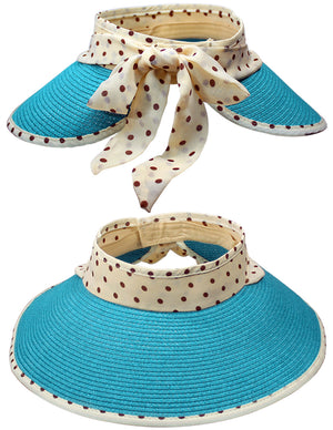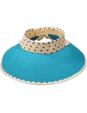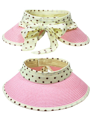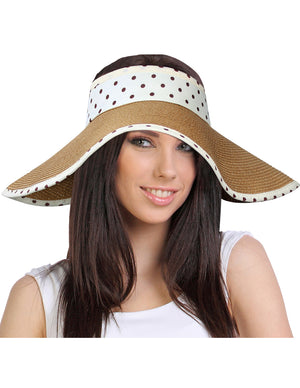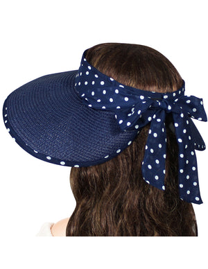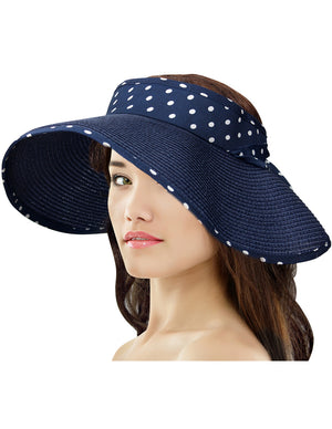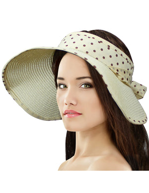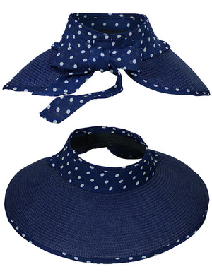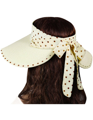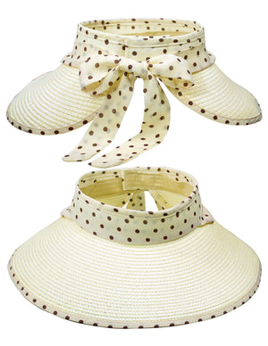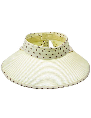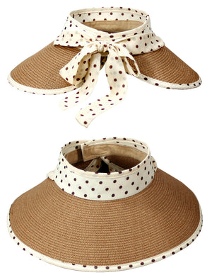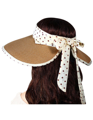 Straw Polka Dot Ribbon Rollable Wide Brim Sun Hat Visor