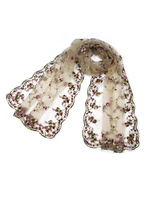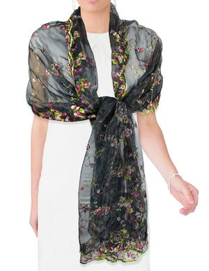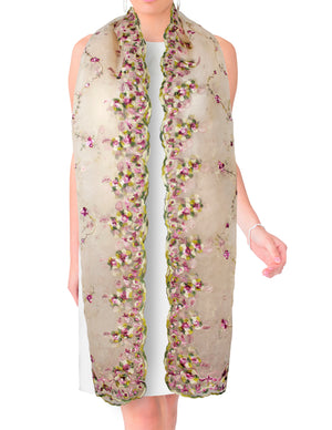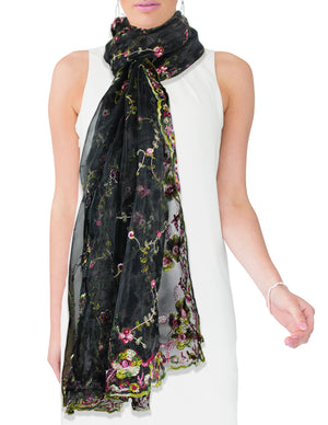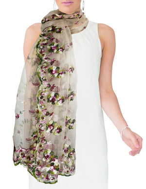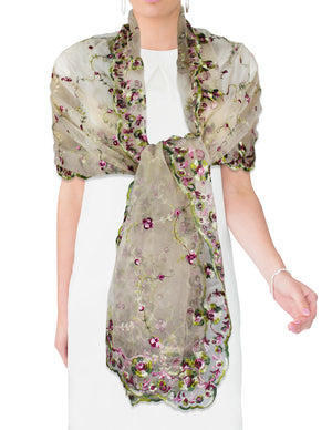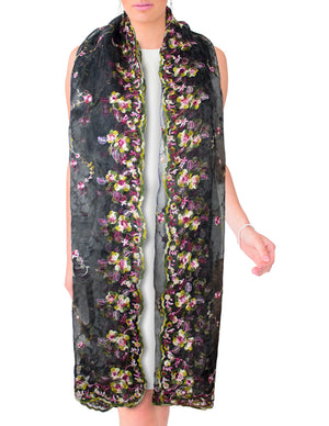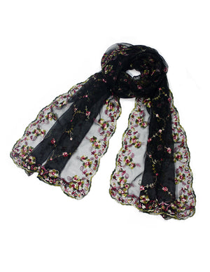 Exquisite Vine Blossom Embroidery Chiffon Evening Scarf Shawl