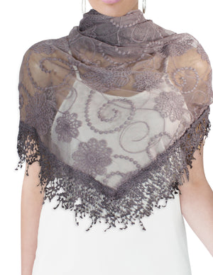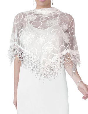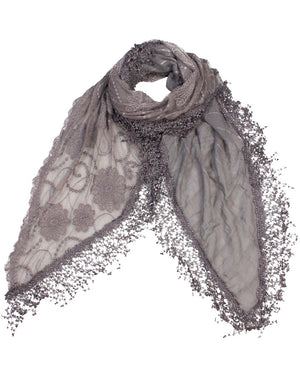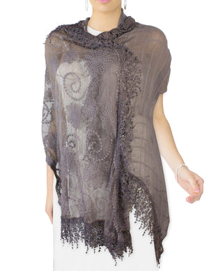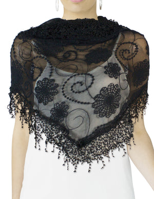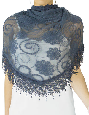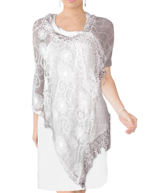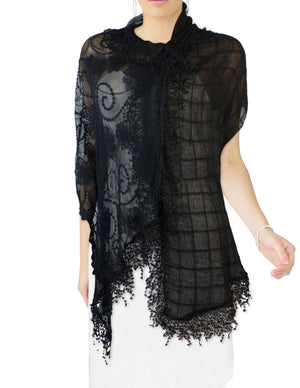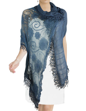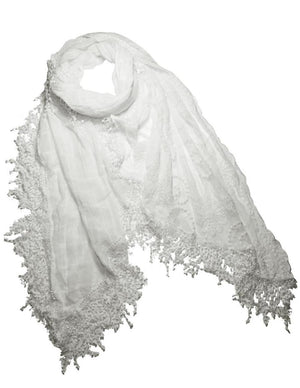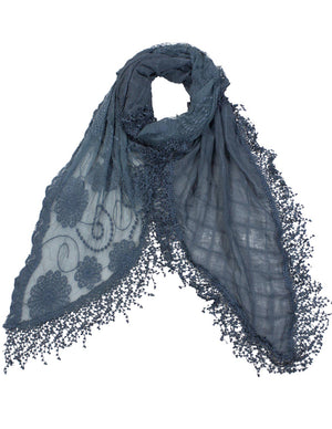 Half Embroidered Flowers & Solid Box Hand Knitted Asymmetric Lace Long Scarf