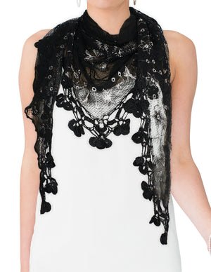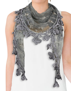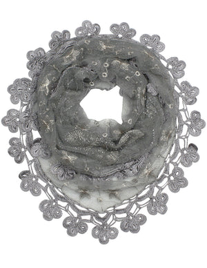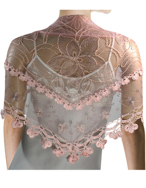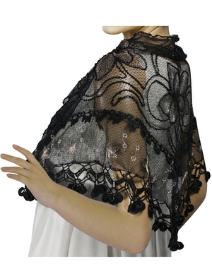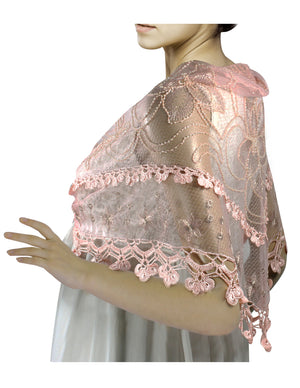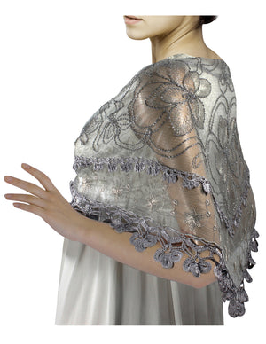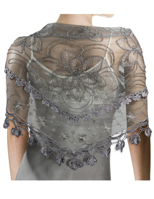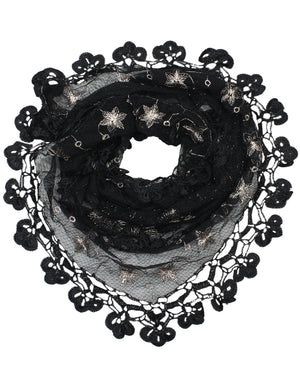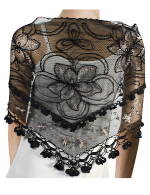 Floral Sequin Lace Triangle Evening Scarf