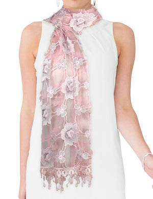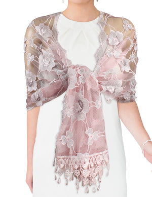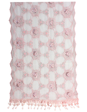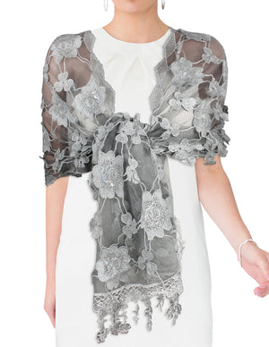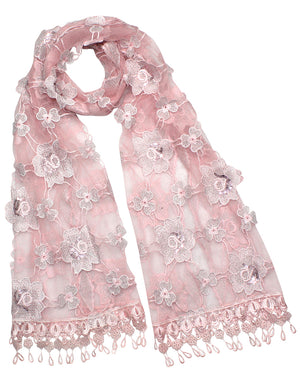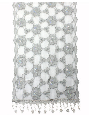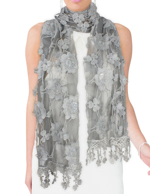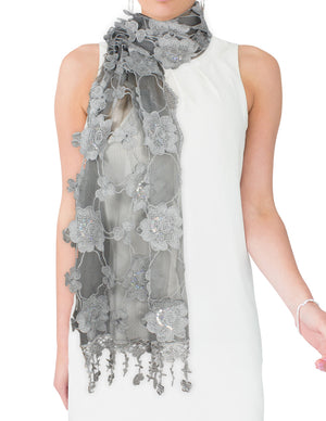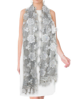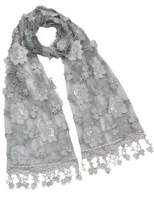 Hand Embroidered Rose and Trillium Flower Shining Sequins Lace Long Scarf Shawl