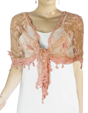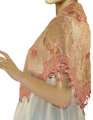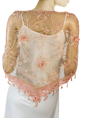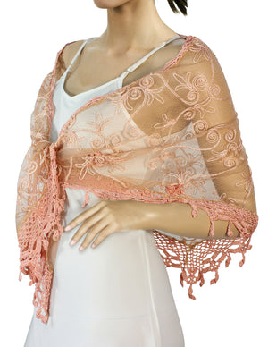 Hand Embroidered Scroll Vine Hand Knitted Lace Tassels Triangle Scarf