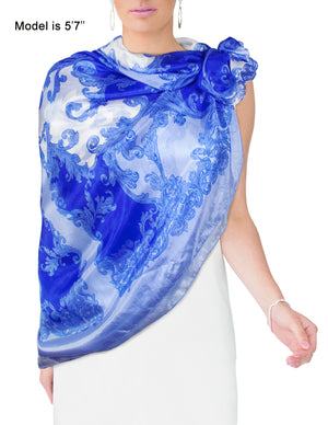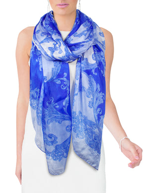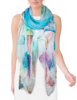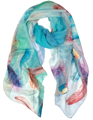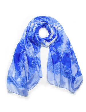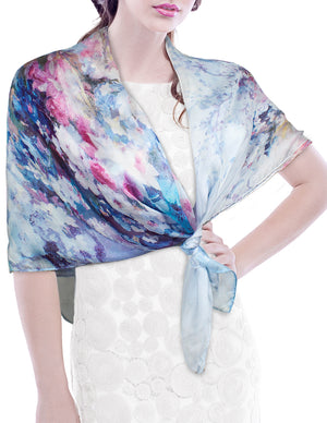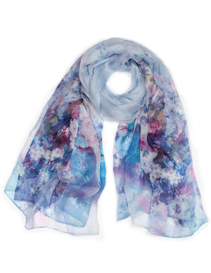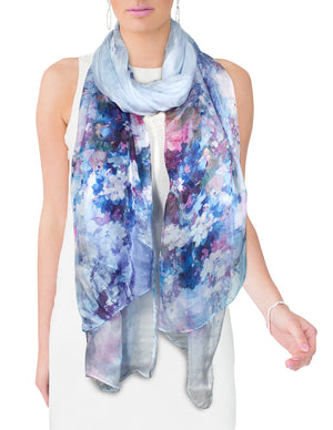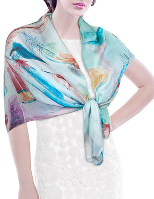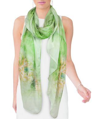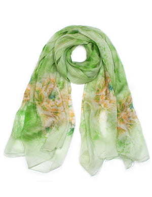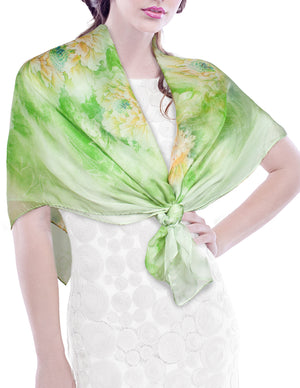 Dahlia Women's 100% Long Sheer Silk Scarf - Colorful Flower Design