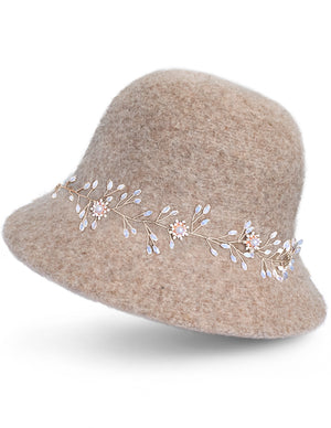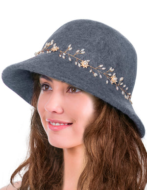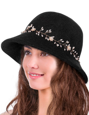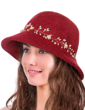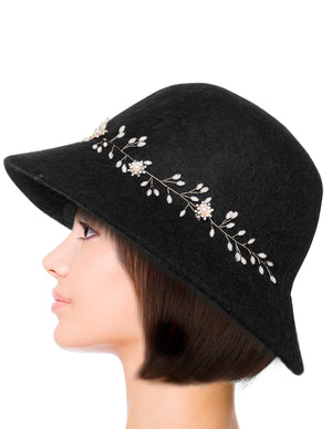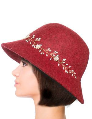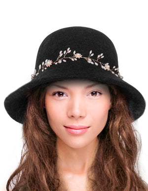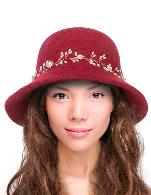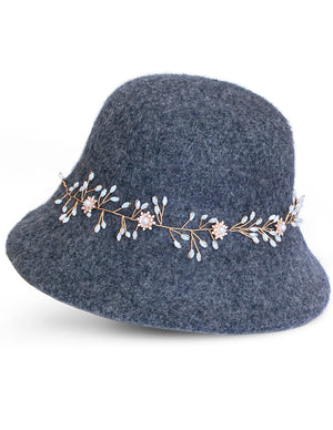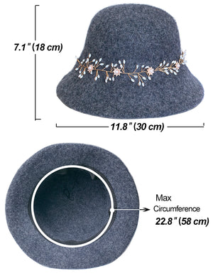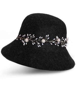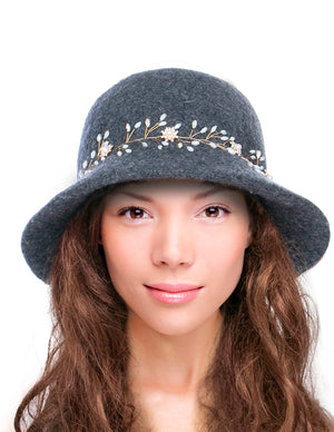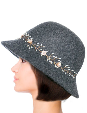 Wool Blend Hand Beaded Winter Bucket Hat / Cloche Hat