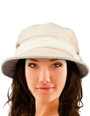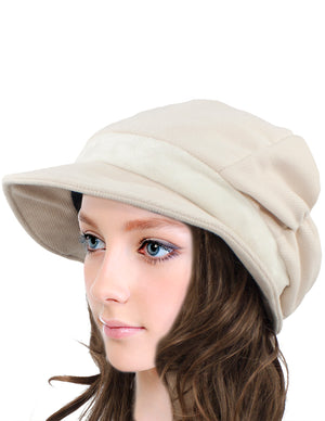 Soft & Warm Velour Lined Cable Knit Visor Cap Hat
