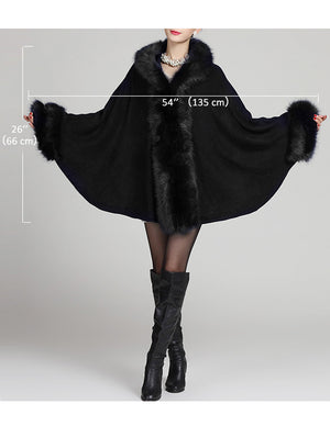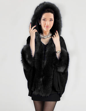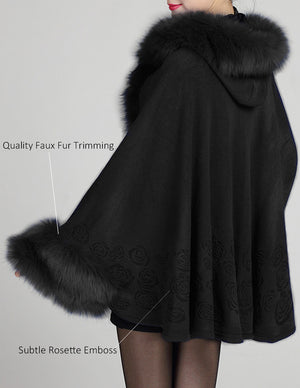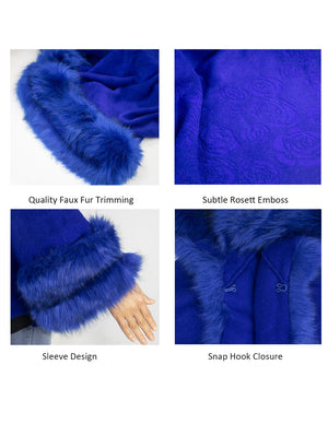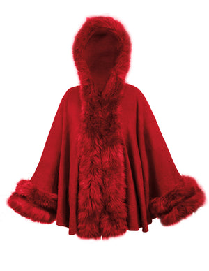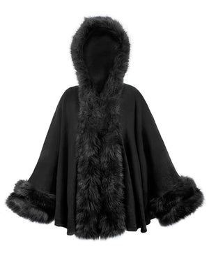 Faux Fur Poncho/Cape with Trimmed Collar Hood and Cuffs