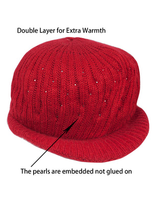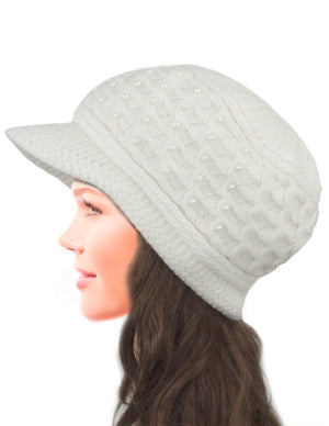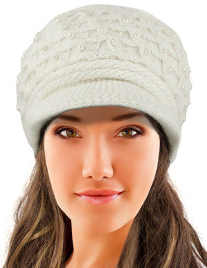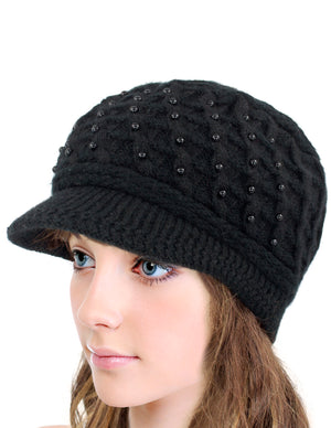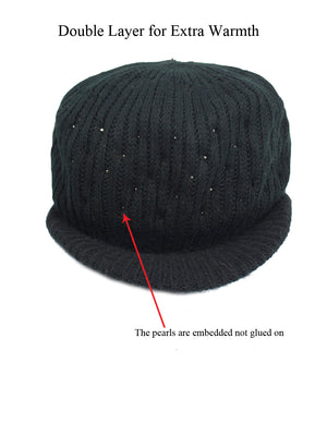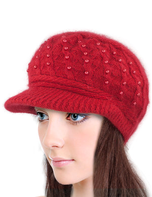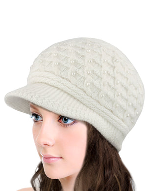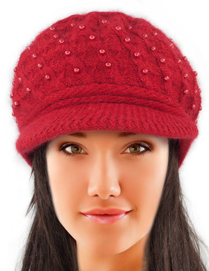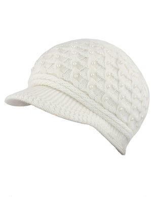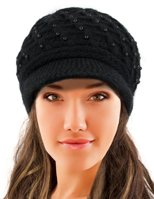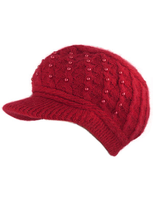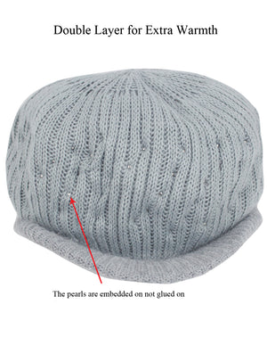 Faux Pearl Accent Dual Layer Angora Blend Newsboy Cap Hat
