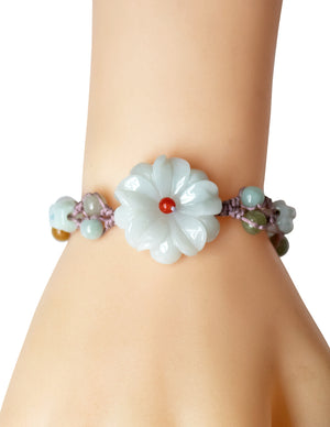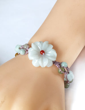 Daisy Jade Bracelet | Certified Genuine Grade A Jadeite Jade Bracelet with Pink Cord| Dahlia