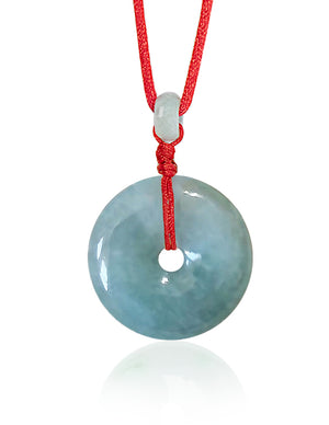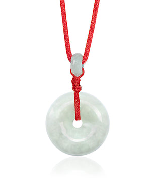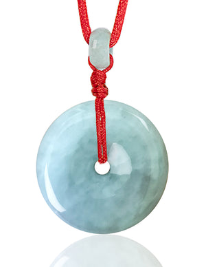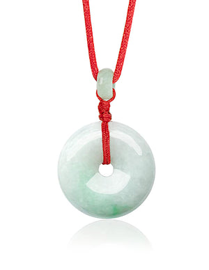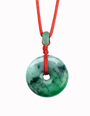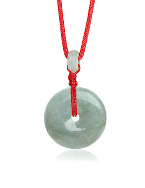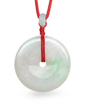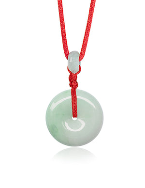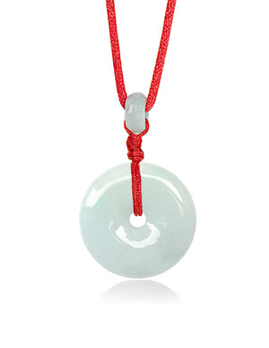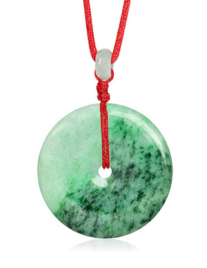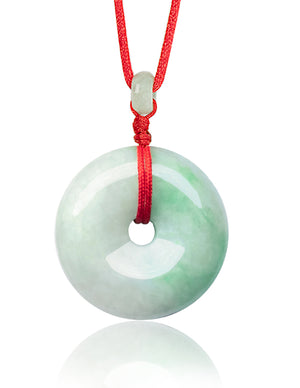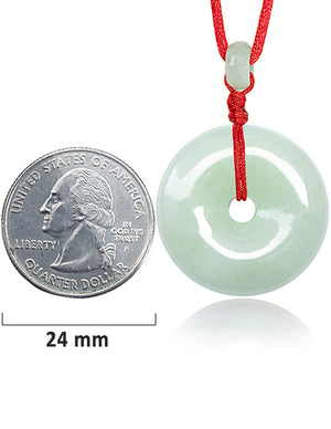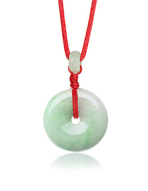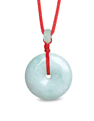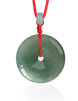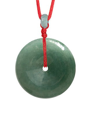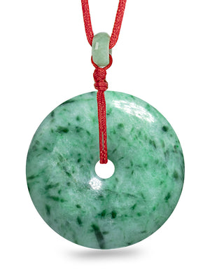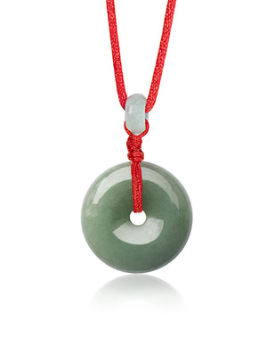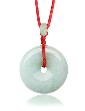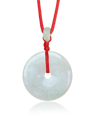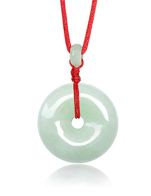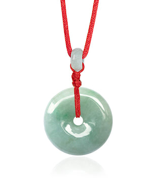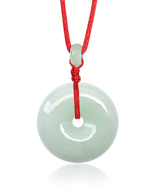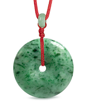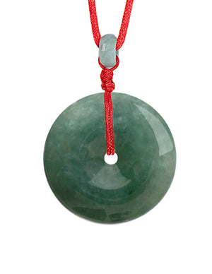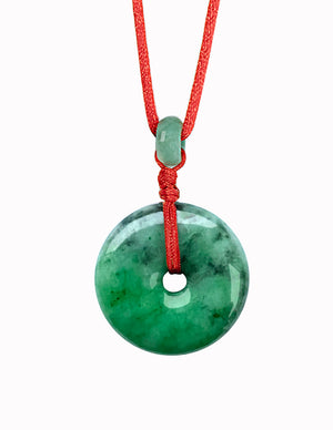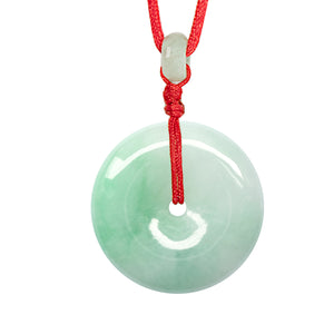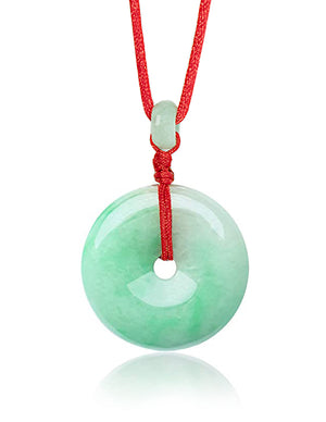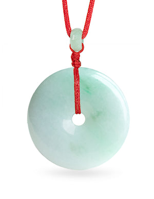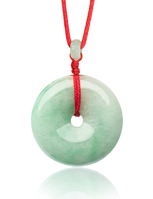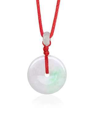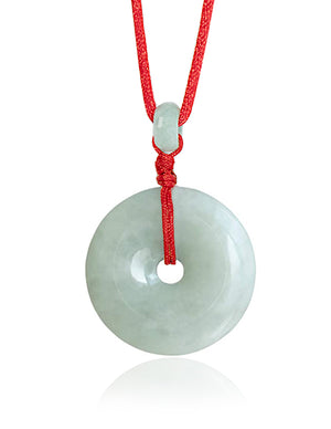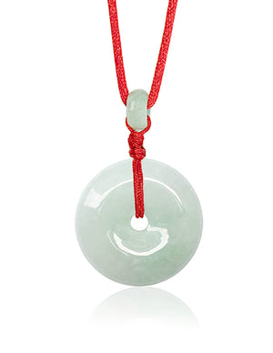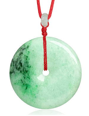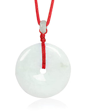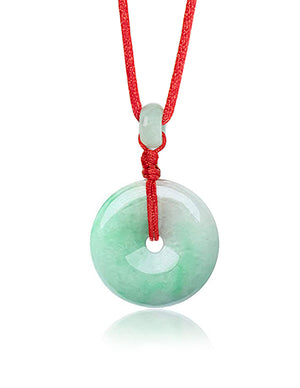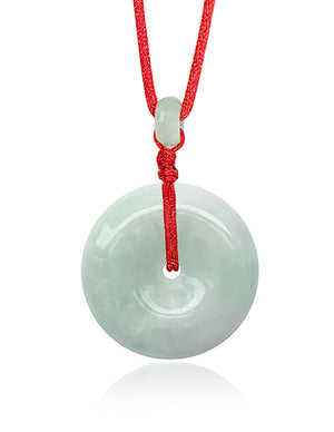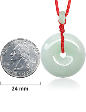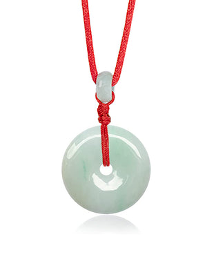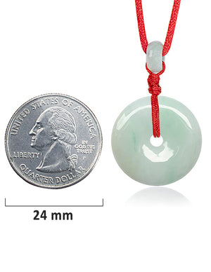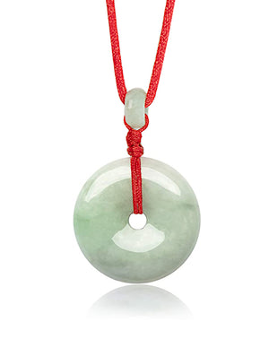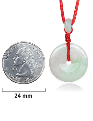 Eternal Circle Jade Necklace | Real Grade A Certified Burma Jadeite for Inner Peace | Adjustable Lucky Red Cord