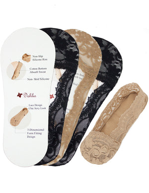 Dahlia Women's Non Slip Liner Socks - Lace Liner